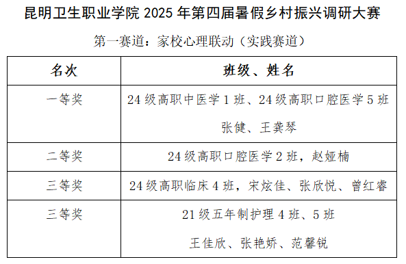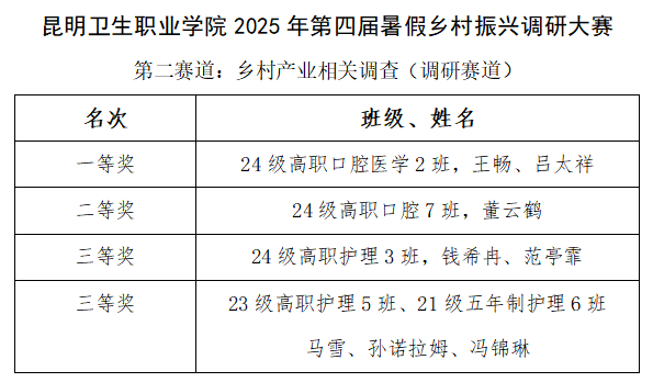 sunbet申搏大学生工作部成功举办第四届假期乡村振兴调研大赛,本次大赛同期设立“家校心理联动”(实践赛道)和“乡村产业相关调查”(调研赛道)双赛道,共收到来自护理、中医、口腔、临床等多个专业的优秀调研报告,近日获奖名单正式公布。大赛以“家校同心·健康同行”为主题,各组同学利用暑期深入云南省宣威、会泽、晋宁、宜良、元阳等地的农村、医院、产业园区,通过问卷、访谈、实地观察等方式,认真调查,展现了医学生扎根基层、服务社会的专业担当。