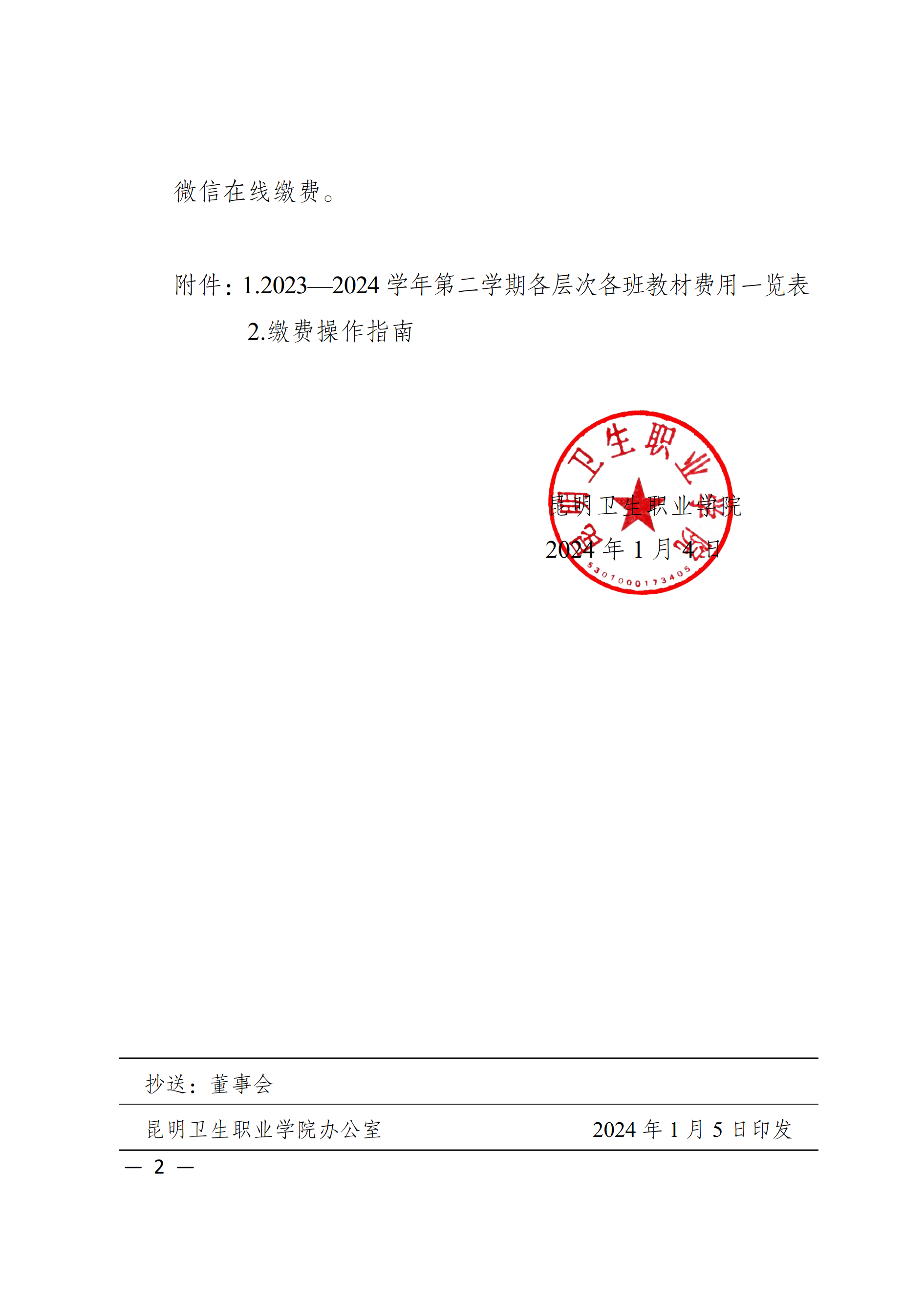 sunbet申搏官方网站关于预收2023—2024学年第二学期教材费用的通知