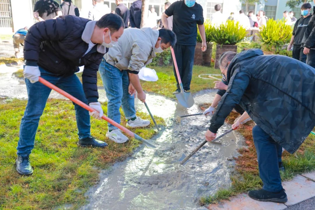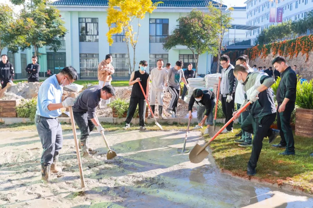 活动开展期间,学院领导多次亲临现场指导或直接参与相关劳动,师生齐心协力,共同画图测量、除草翻地、搬石砌砖,不断强化实践体验,让师生亲历劳动过程,让劳动教育寓教于乐,提升育人实效性。