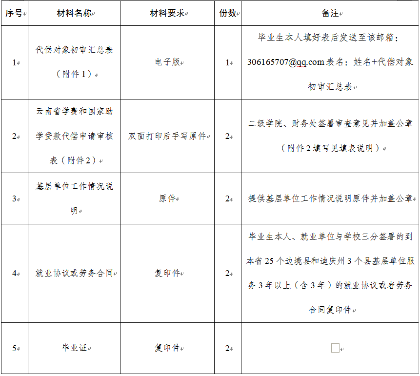 为贯彻落实《云南省教育厅办公室关于做好2024年云南省普通高校毕业生学费和国家助学贷款代偿初审工作的通知》的要求,引导和鼓励学院毕业生到基层单位就业,加大对25个边境县市和迪庆州3个市县基层单位就业的人才支持力度,现将学院2024年毕业生学费和国家助学贷款代偿初审工作事宜通知如下: