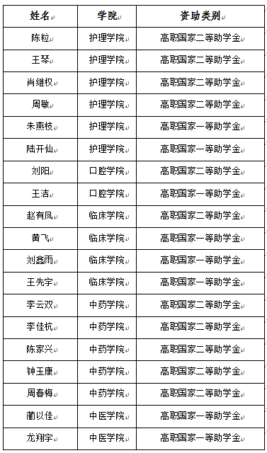 高职国家助学金调增学生名单: