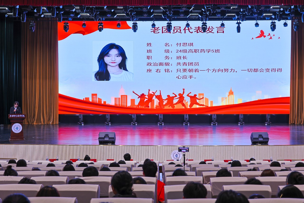 24级高职药学5班付思琪作为老团员代表,分享了她在团组织中的成长经历,鼓励新团员积极参与团组织活动,争做新时代有为青年。
