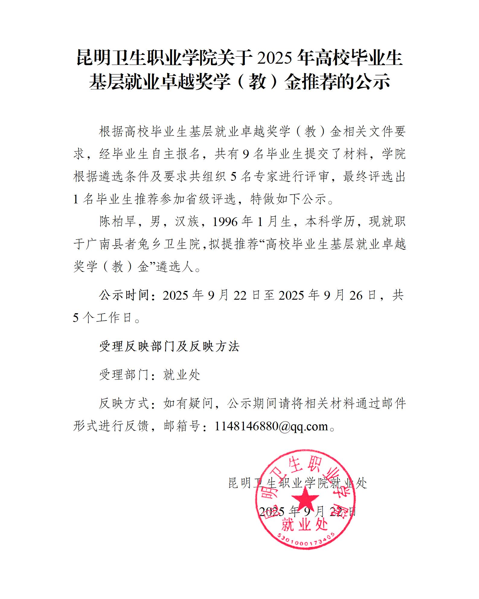 sunbet申搏官方网站关于2025年高校毕业生基层就业卓越奖学(教)金推荐的公示