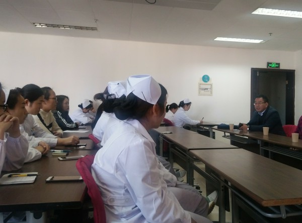 护理学院蒋淑昆院长对实习生科室轮转情况进行了解,在学习上给同学们提出了很多好的方法和建议,并督促同学们抓紧资质考试的复习,确保过关率。蒋院长一再鼓励实习学生敢于吃苦,勇于坚持,学校给同学们今后的升学和就业提供了良好的平台。