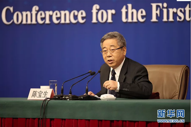 十三届全国人大一次会议新闻中心于3月16日10时在梅地亚中心多功能厅举行记者会,邀请教育部部长陈宝生就“努力让每个孩子都能享有公平而有质量的教育”相关问题回答中外记者提问。图为教育部部长陈宝生回答记者提问。新华网/中国政府网