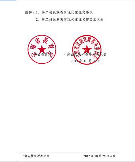 云南省教育厅 云南省民族宗教事务委员会关于开展云南省第二届民族教育现代化专题研究征文活动的通知