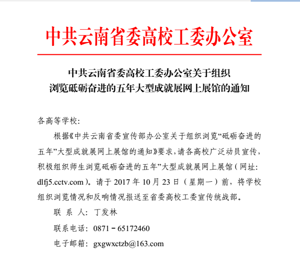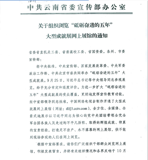 关于组织浏览砥砺奋进的五年大型成就展网上展馆的通知