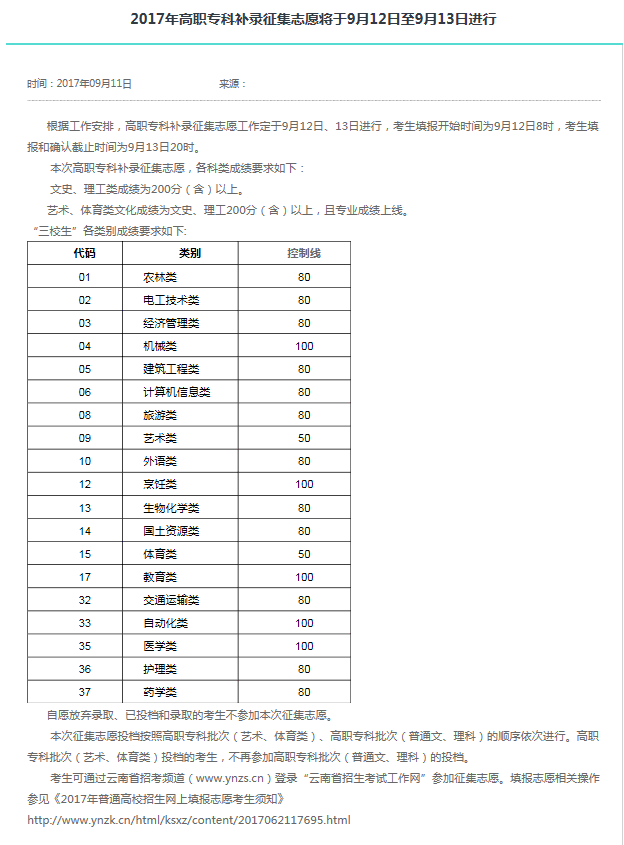 2017年高职专科补录征集志愿将于9月12日至9月13日进行