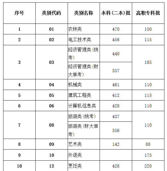 2019年云南省高职招收“三校生”招生录取最低控制分数线