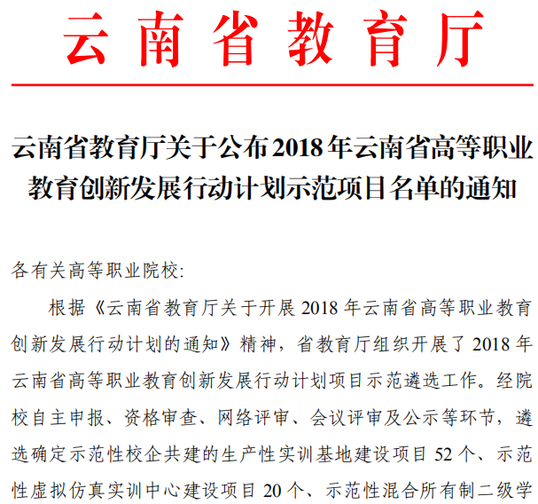 近日,云南省教育厅公布了2018年云南省高等职业教育创新发展行动计划示范项目名单,sunbet申搏官方网站基础医学院解剖标本制作生产性实训基地入选云南省高等职业教育创新发展行动计划示范性校企共建的生产性实训基地。