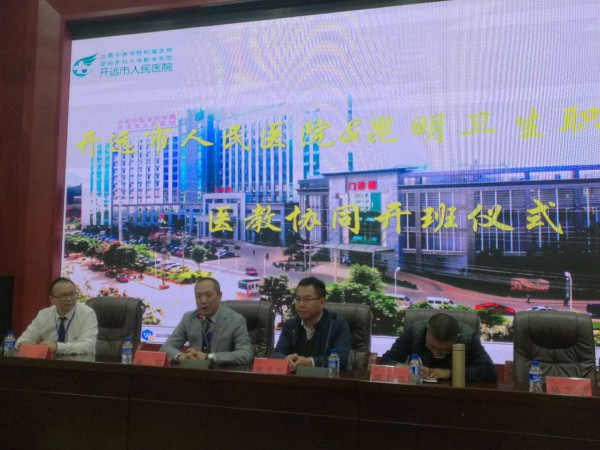 张尤松副院长在开班仪式上讲话,首先,对开远市人民医院一直以来,在教学中的付出表示衷心感谢,并对医教协同的教学优势和重要意义进行了高度的概括,对该教学模式充满了信心。其次,对同学们在开远市人民医院的学习、纪律、安全提出了要求。
