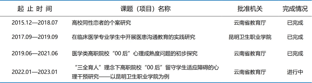 五年来,心理咨询科教师主持及参与各级科研课题4项,发表论文10篇,出版教材4部。