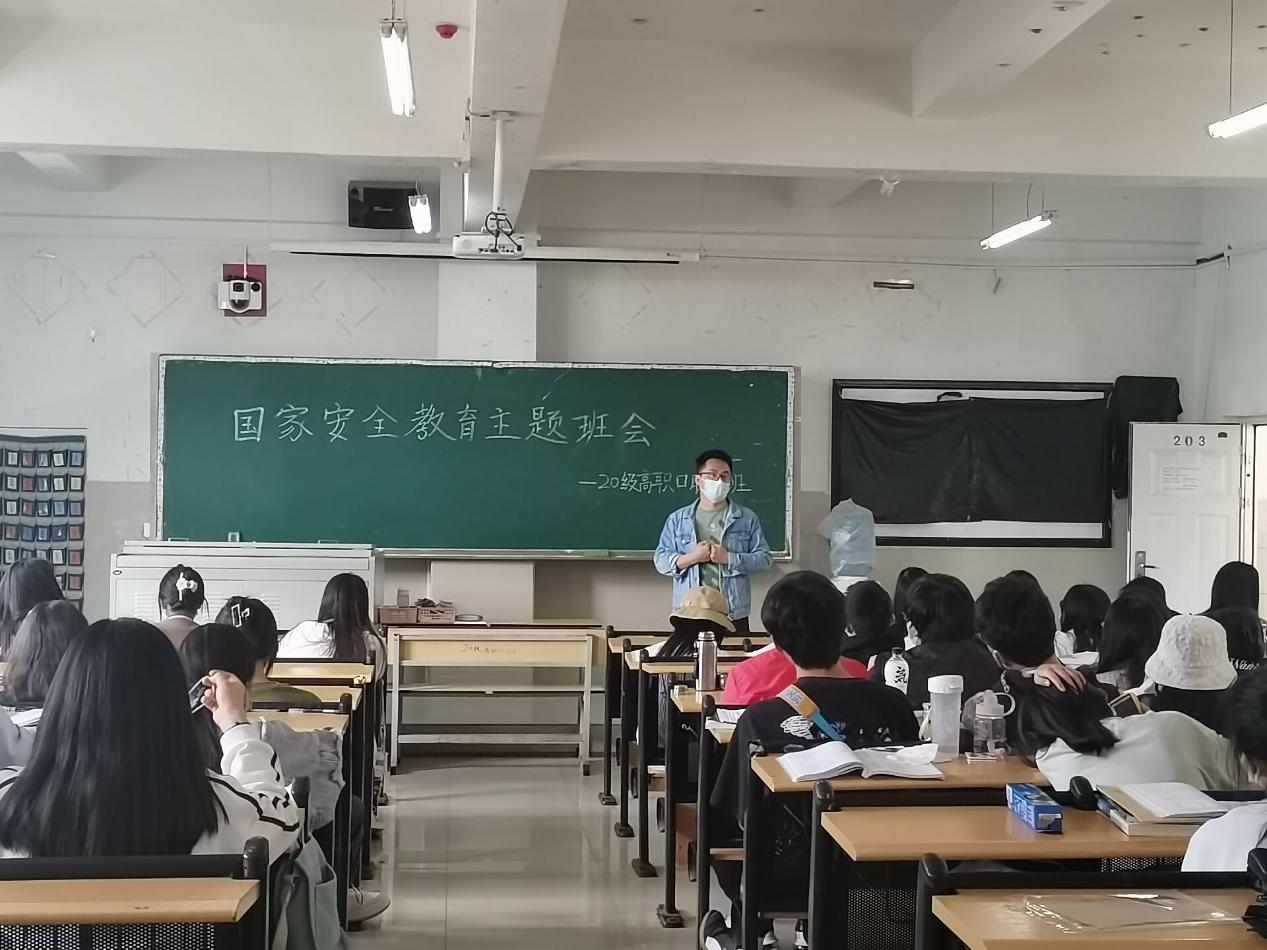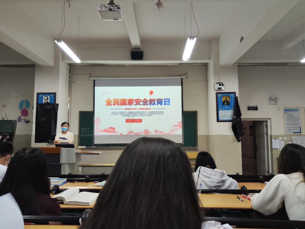 各班辅导员老师重点介绍了国家安全日的相关知识和日常生活中有关国家秘密的注意事项,并以网络舆论为主题,对学生进行了国主义主题教育,同时要求大家在网上注意言行,自觉维护良好的舆论环境和网络氛围;要求广大青年学生做好国家安全小卫士,遵守宪法,法律法规关于国家安全的有关规定,保守所知悉的国家秘密,了解并杜绝危害国家安全的行为,国家的希望在于青年,希望寄予青年。