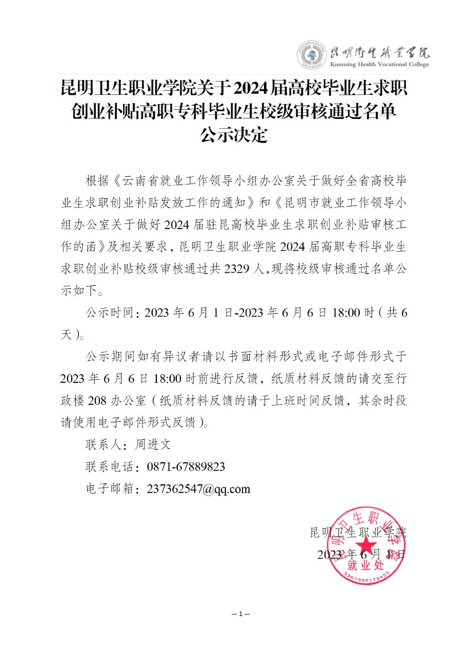 sunbet申搏官方网站关于2024届高校毕业生求职创业补贴高职专科毕业生校级审核通过名单公示决定