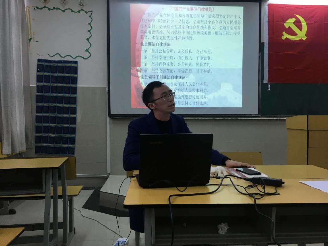 为进一步增强党员干部廉洁自律意识,深入推进反腐倡廉建设,10月10日下午,公共学院党支部开展学习贯彻《中国共产党纪律处分条例》专题党课,会议由公共学院党支部书记聂元会同志专题讲解《中国共产党纪律处分条例》。公共学院党支部全体党员参加了党课学习。