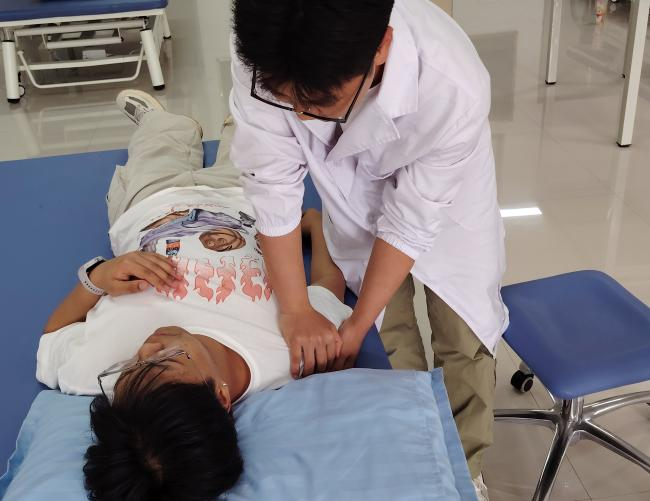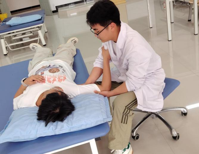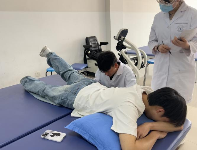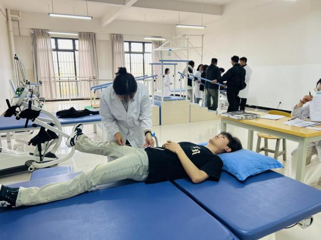 康复治疗技术专业的考核亦展现出其独特魅力。本次技能考核聚焦于关节活动度测量、关节松动技术、理疗仪器操作三项核心内容。考场上,同学们沉稳应考,在测量关节活动度时细致精准;操作关节松动技术时动作规范;使用理疗仪器时手法娴熟。充分体现了康复治疗的科学性和专业性。在与“患者”的沟通交流中,学生们展现出良好的沟通技巧和人文关怀,让“患者”感受到温暖和信心。