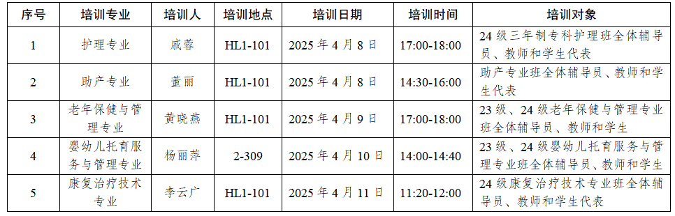 本次培训的核心目的是让全体辅导员、教师和学生深刻理解2024版护理专业群人才培养方案的内涵与要求。通过培训,帮助教师明确教学目标与方法,提升教学水平;引导辅导员更好地配合教学工作,服务学生成长;让学生了解专业发展方向,明确自身学习目标,为未来的职业生涯奠定坚实基础。