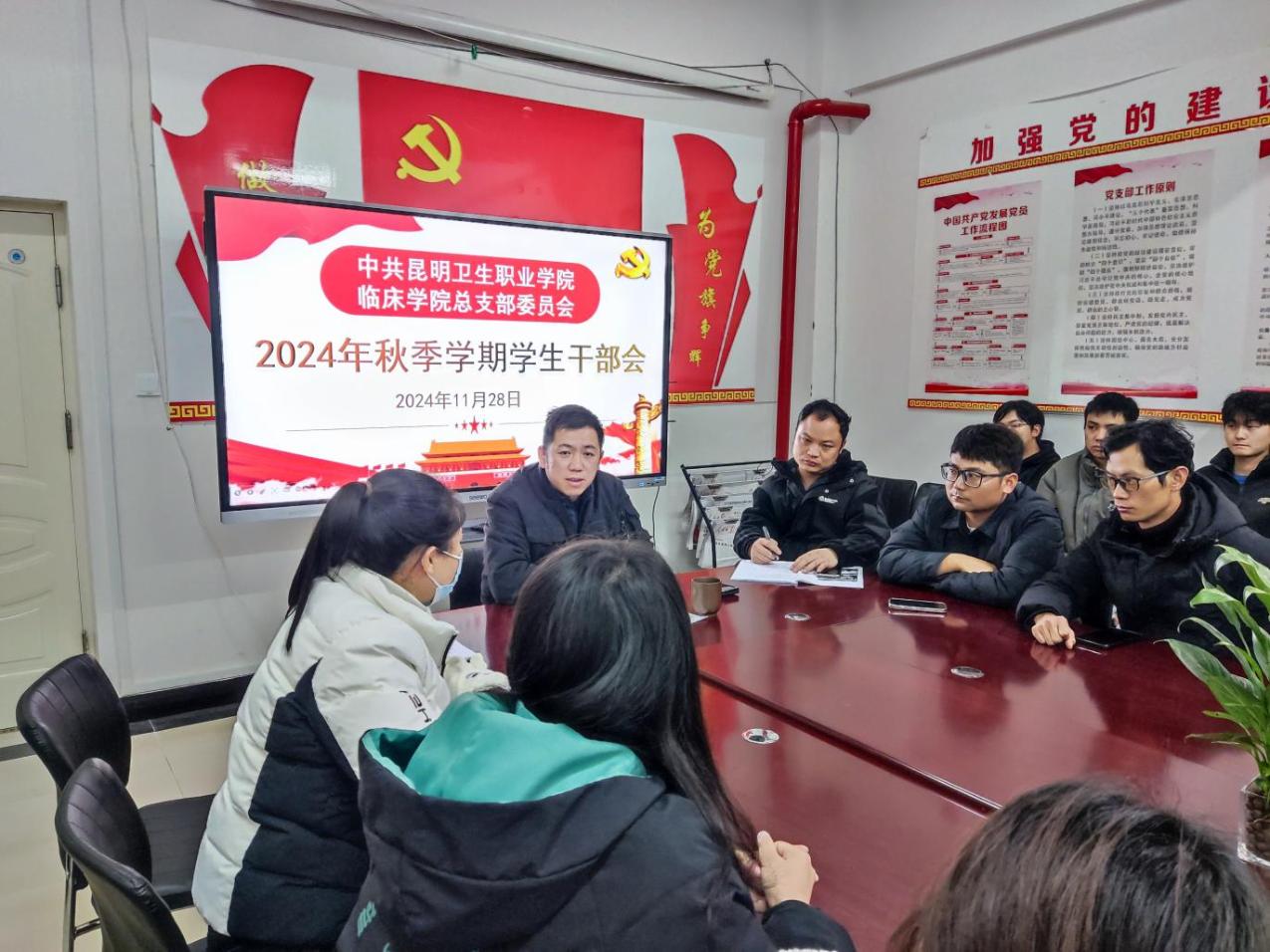 为深入学习贯彻落实党的二十届三中全会精神,进一步加强新时代爱国主义教育,激发学生的爱国之心、报国之情、强国之志,2024年11月28日,临床学院党总支于临床学院405党员活动室组织召开2024年秋季学期学生干部会。临床学院党总支书记王正安,临床学院第一党支部书记余建坤、第二党支部书记杨林杰、第三党支部书记陶敬磊及40余名学生干部参加,会议由王正安书记主持。