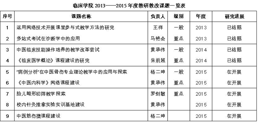 临床学院2013至2015年度教研教改课题