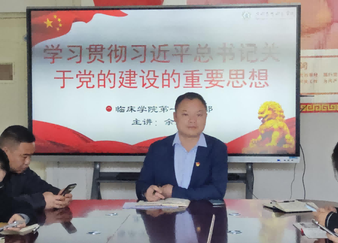 于2025年3月26日,在临床学院第一党支部书记余建坤同志的组织带领下,在临床学院405党员活动室开展了题为“学习贯彻习近平总书记关于党的建设的重要思想”的党课。这次党课的主要目的是让每一位党员同志都能深入了解并领会习近平总书记关于党的建设的重要思想的核心内涵及其深远影响。余建坤同志从理论层面出发,对习近平总书记关于党的建设的一系列重要论述做了详细解读,并结合当前社会形势和个人工作经验分享了自己的...