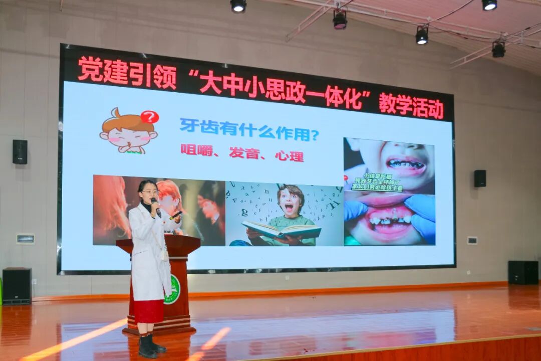 口腔学院教师金佳带来“护牙小课堂”,借助牙齿模型,以“牙齿宝宝的健康日记”比喻,生动讲解龋齿成因,现场演示巴氏刷牙法,并通过趣味问答帮助孩子们牢记护牙知识,鼓励人人争做“护牙小卫士”。