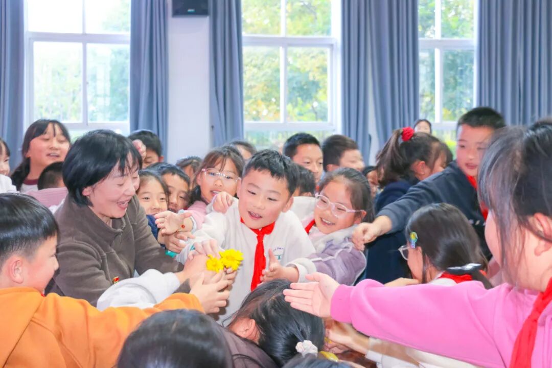 随后,马克思主义学院执行院长苏敏“化身”张问德爷爷,与四位小学生展开一场跨越时空的对话。从抗战岁月的担当,到文字背后的力量,再到新时代少年的责任,真诚的问答之间,红色基因悄然传递。对话尾声,孩子们齐声宣誓:“缅怀张爷爷,勇担少年责!强国有我在,奋进不退缩!”坚定的话语,映照出红色精神在他们心中的生根发芽。