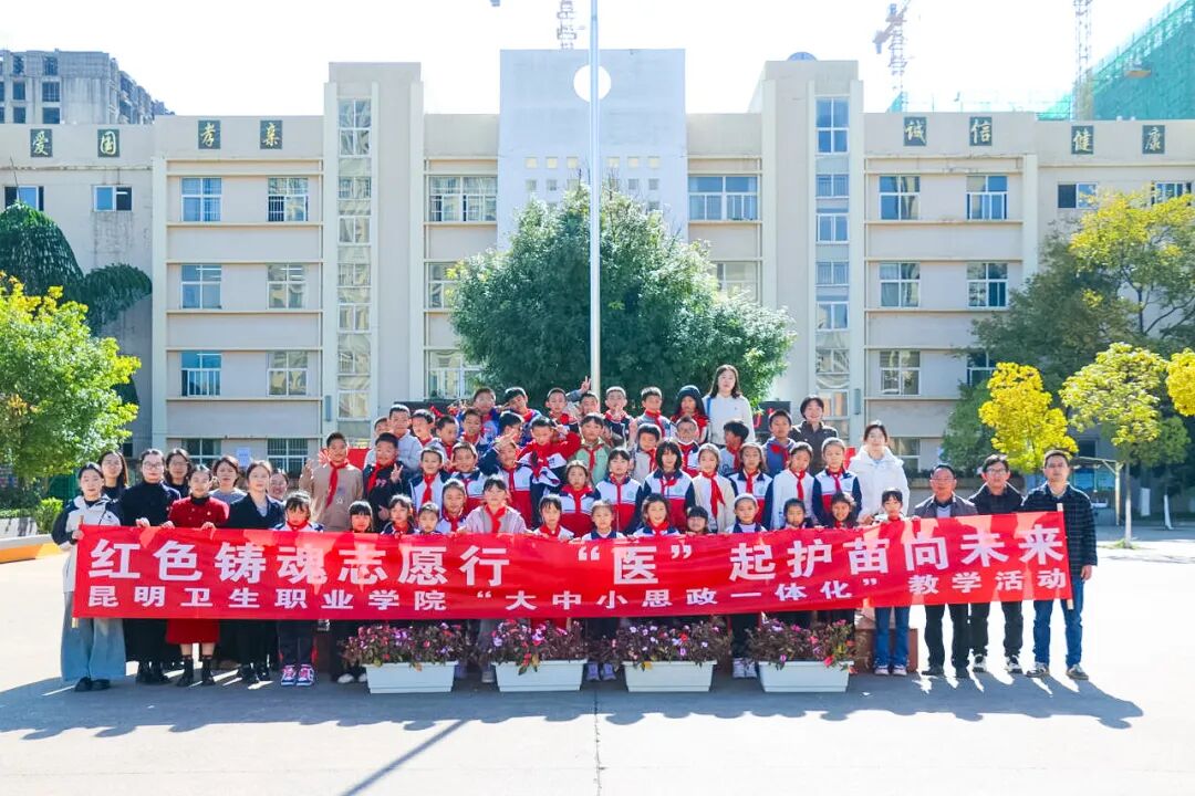 为深入学习宣传贯彻党的二十届四中全会精神,隆重纪念中国人民抗日战争暨世界反法西斯战争胜利80周年,扎实推进大中小学思政课一体化建设,充分发挥高校基层党组织立德树人引领作用,2025年11月27日,sunbet申搏官方网站马克思主义学院、口腔学院、中药学院直属党支部联合组织10余名党员教师代表、发展对象及入党积极分子,赴晋宁区昆阳第一小学开展“红色铸魂志愿行,‘医’起护苗向未来”主题党日教学志愿服务活动。