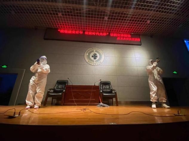最后由宣讲团的(胡春,苏源,吴鸿运)三位同学带来的话剧表演《白雏振翼,展望未来》作为一名医生,过硬的知识技术是需要,而对生命的敬畏是必要。一名刚毕业的医学生从玩世不恭到主动请缨参加抗疫。这期间他们经历了生死离别,懂得了作为一名医务工作者的神圣职责。