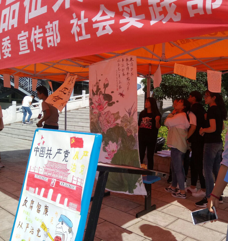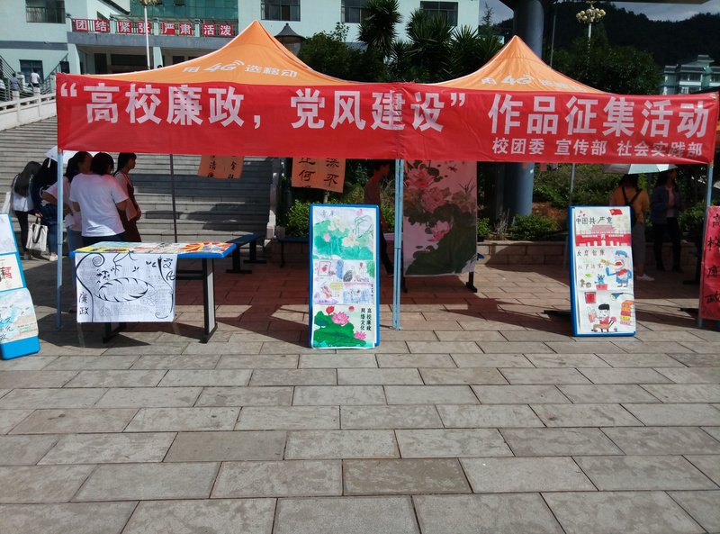 为了让同学更加深入了解“高校廉政,党风建设”sunbet申搏官方网站校团委宣传部与社会实践部,在sunbet申搏官方网站大屏幕下举办了“高校廉政文化作品征集”优秀展出的活动。