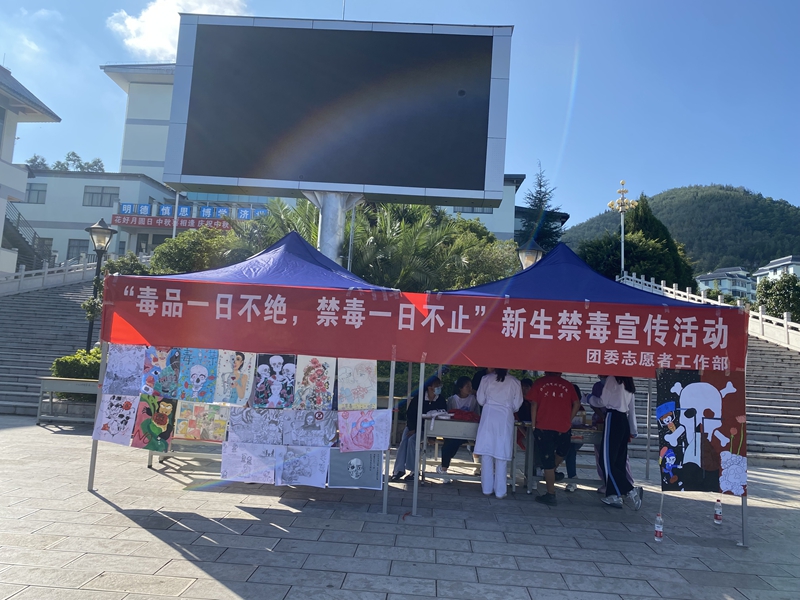 活动分为四大板块区,绘画征集、知识竞赛、校园禁毒宣传标语拍摄、观看禁毒微电影以及新生开学第一课。