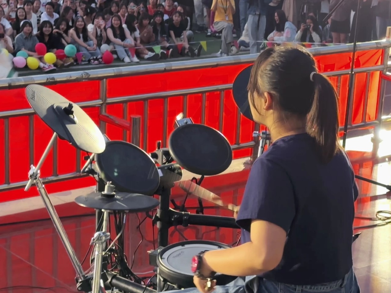 随着夜幕的降临,由梁鸿宇同学带来的舞蹈《we rock》拉开帷幕!接下来乐队开始出场,一首痛仰的《再见杰克》唱出现场多少人的青春,主唱把这首歌表现得淋漓尽致,下面的观众开始不约而同的打开闪光灯为乐队增添了一份色彩; 一曲《再见凯鲁亚克》说出了对过去的再见,要开始重新的生活,也告诉在场的同学们不要在意自己过去发生了什么,我们应该向前看,开始自己新的起点,新的生活。伴随着一首首青春之歌响彻夜空,同学们沉浸在音乐的快乐海洋里,现场的笑声、掌声、欢呼声不绝于耳。