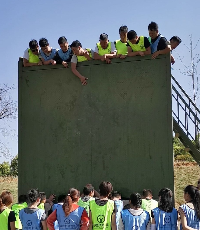 随后,两组队员分别进行“信任背摔”、“挑战150”和“冰海乘船”、“毕业墙”等项目比赛,老师们热情似火,相互协作,积极挑战困难,完成各项比赛任务,整个赛场充满了“加油声”、“欢呼声”。