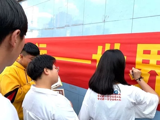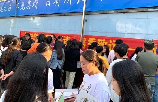 紧接着,读书签名活动接棒火热开展,学生们看到悬挂在主席台上的签字横幅早已“蠢蠢欲动”,启动仪式话音刚落,大家争前恐后纷纷在签字横幅上留下自己最美“足迹”。有的同学跟老师详细询问推荐经典,有的同学跟身边的同学喃喃交流,好不热闹。