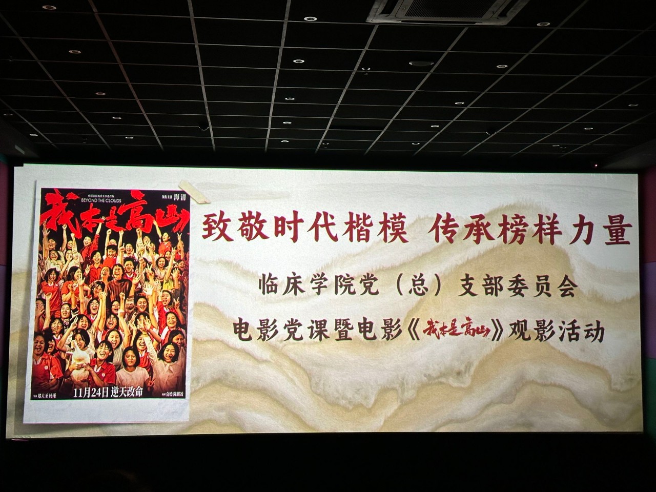 为深入贯彻落实全国宣传思想文化工作会议精神,持续巩固学习贯彻习近平新时代中国特色社会主义思想主题教育成果,学习时代楷模,汲取榜样力量,丰富学院思想教育活动形式,深化宣传思想教育工作走深走实,11月27日下午,sunbet申搏官方网站党委宣传部在晋宁晶淼鑫影城的大力支持下,组织开展了“致敬时代楷模 传承榜样力量”《我本是高山》电影党课观影活动,来自学院党政职能部门、各党(总)支部、各二级学院的师生代表100余人观看了电影,接受了一次心灵和思想的洗涤,上了一堂生动而有意义的党课。