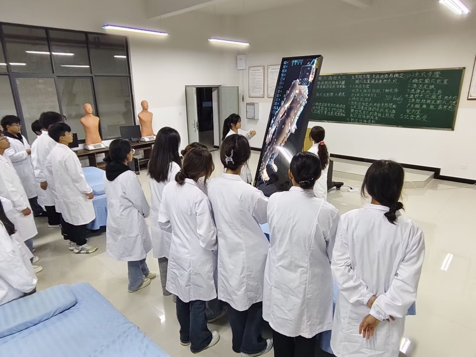 紧接着,在中医学院教学办老师的带领下,24级新生参观了中医学院的各间实训室。实训室内,23级学生助教们全神贯注地进行着技能展示,他们的每一个动作都精准而娴熟,仿佛在书写着中医实训的精彩篇章。24 级新生们围拢在四周,眼神中充满了好奇与期待。通过这次参观,新生们对未来三年需要学习的实训技能有了初步的认识,那一个个熟练的操作、一件件精密的仪器,如同闪耀的星星,照亮了他们即将踏上的中医学习之路。在这个充满着知识与探索的实验室里,新生们感受到了中医实训的魅力与挑战,也为他们的学习生涯注入了新的动力和希望。