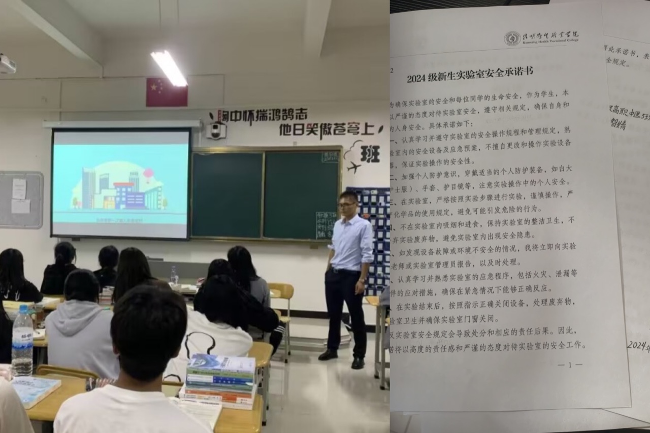 为进一步加强实验室安全管理,提高同学们的自我保护能力和实验安全意识,确保学生在实验室学习中的安全。根据sunbet申搏官方网站关于印发《sunbet申搏官方网站实验室安全管理实施细则》的通知昆卫院〔2024〕46号、《sunbet申搏官方网站实验室安全分级分类管理办法(试行)》的通知昆卫院〔2024〕111号及《教务处关于开展新生实验室安全教育的通知》昆卫教〔2024〕174 号等文件精神,中医学院于10月8日到10月17日期间组织2024级全体新生(共计:1396人次)开展了为期两个周的实验室安全教育系列活动。
