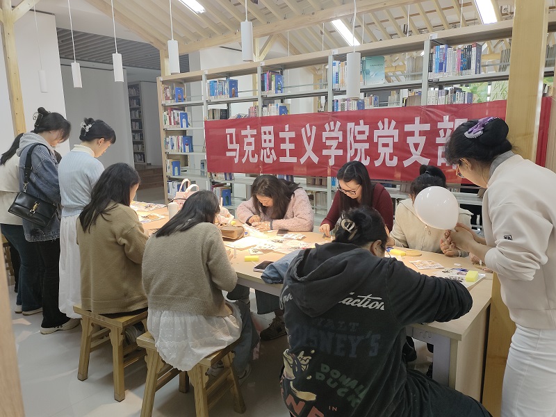 为弘扬中华优秀传统文化,深化党建带工建工作模式,增强学院凝聚力,在端午节来临之际,马克思主义学院直属党支部联合工会小组,于2025年5月29日在学院新图书馆举办了一场别开生面的端午节手工活动,组织教职工参与DIY杯垫制作。活动现场,“马克思主义学院党支部”的红色横幅格外醒目,营造出浓厚的党建引领氛围。党支部充分发挥引领作用,协同工会小组精心筹备,为教职工们准备了丰富的手工材料,每一处都体现着党建带...